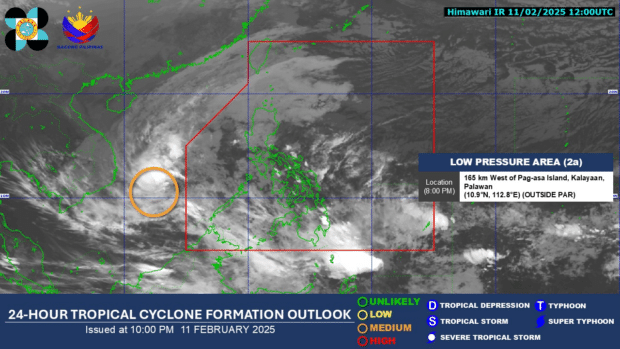 MANILA, Philippines — A low pressure area (LPA) was monitored outside the Philippine area of responsibility (PAR) on Tuesday evening, the Philippine Atmospheric, Geophysical and Astronomical Services Administration (Pagasa) said. Pagasa said that the LPA was observed at 8 p.m. It was last located 165 kilometers west of Pag-asa Island in Kalayaan, Palawan. READ: Cloudy skies, rain expected in NCR, 12 other areas due to northeast monsoon It added that the LPA “has a MEDIUM chance of development into a tropical depression within the next 24 hours.” READ: Pagasa predicts zero or only one storm in February 2025 The agency […]…